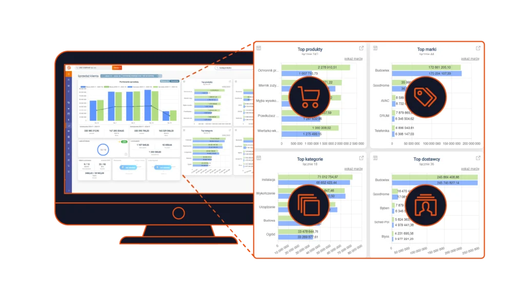 Az értékesítési adatok különböző szempontokból elemezhetők – termékek, kategóriák, márkák és beszállítók szerint. Ez lehetővé teszi, hogy megtudja, mely termékcsoportok generálnak bevételt és árrést, és melyek nem, valamint hogy hol kell összpontosítania kereskedelmi tevékenységeit.