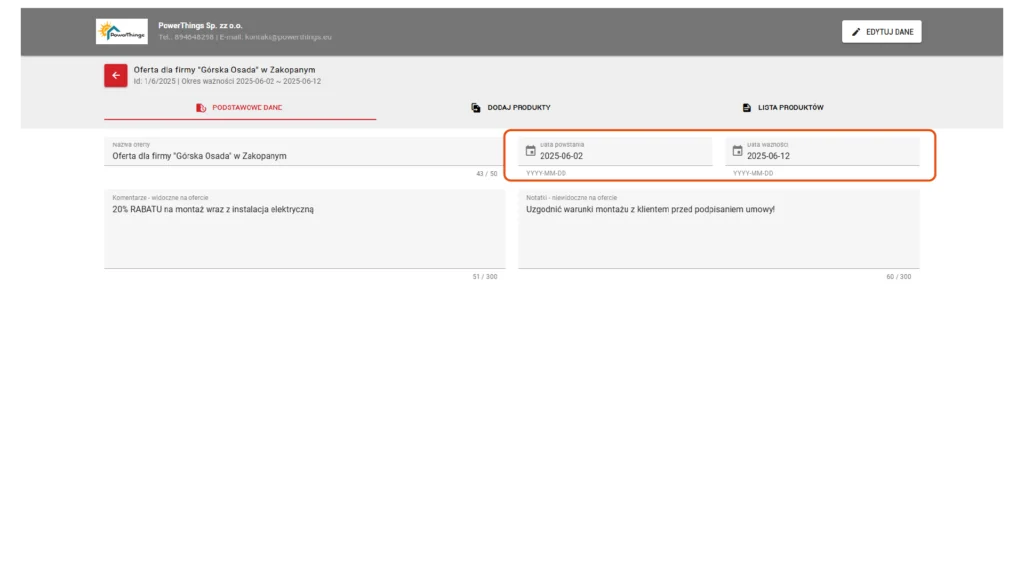 A felhasználó határozza meg az ajánlat érvényességi idejét – az ajánlattól és a végéig -, így biztosítva a kereskedő számára az átláthatóságot és a pontosságot a kereskedési tevékenységek során.